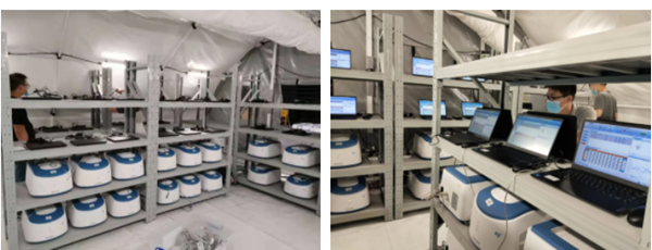 24日晚11點前,運輸團隊將“獵鷹號”氣膜實驗室所需要各類儀器帶來全新智能、設備按時送達一線實現了超越。隨后技術服務團隊無縫對接,連夜將儀器設備拆箱整理去完善,兩班倒通宵為3組“獵鷹號”氣膜實驗室做前期準備橋梁作用。