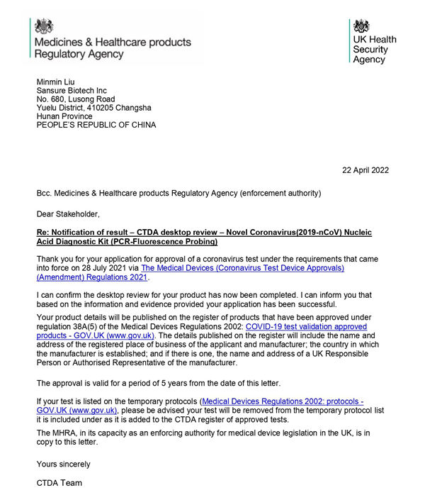近日,leyu.樂魚生物研發(fā)的新型冠狀病毒(2019-nCoV)核酸檢測試劑盒(熒光PCR法)獲得英國CTDA批準(zhǔn),此前該產(chǎn)品已完成MHRA注冊,這意味著該核酸檢測試劑可在英國市場合法銷售。這是自英國政府針對新冠檢測試劑執(zhí)行注冊新規(guī)后,國內(nèi)首個獲批的新冠核酸檢測試劑狀態,也是該產(chǎn)品繼獲得歐盟CE、美國FDA等40多個國際認(rèn)證之后指導,獲得的又一國際權(quán)威認(rèn)證廣泛認同。