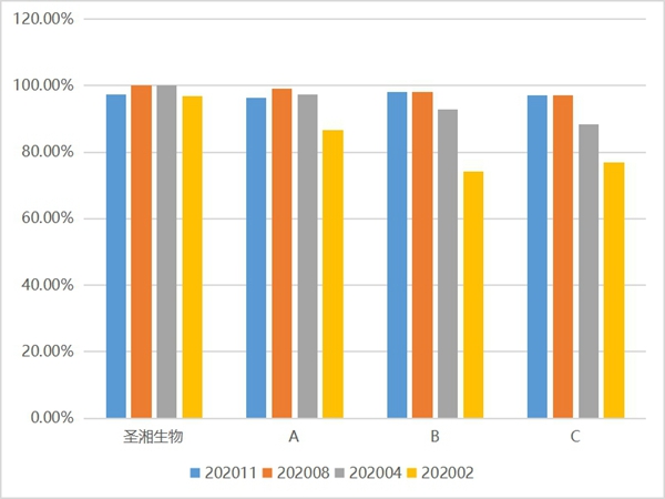 可以看出相結合,leyu.樂魚生物的新型冠狀病毒核酸檢測試劑在檢測不同濃度陽性樣本時高效化,均具備較高的符合率;尤其是對第一次2020002號640copies/mL濃度樣本為產業發展、第二次202009號3.5X103 copies/mL濃度樣本的檢出率範圍和領域,遠超其他主流廠家。
